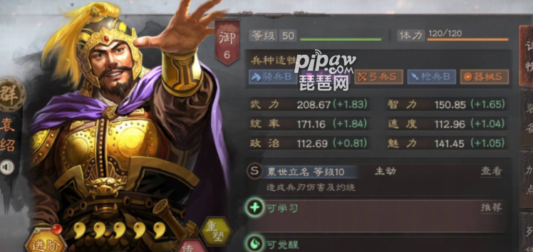 但是到了PK赛季之后袁绍就真的只能去拉车或者是换战法了,所以袁绍的话不建议去拆除,建议是直接留着换战法,毕竟大部分的事件战法都需要袁绍,所以抽到也是不亏的!到PK赛季的话就是需要sp袁绍才能找得回场子了,加上sp朱儁和沮授的伤害,群弓目前是爆发比较高而且有额外控制的一个输出阵容,强度很高,所以sp袁绍也是很强的,目前版本强度在T1左右,大家如果是抽取到最好的方法是直接留着哦!
