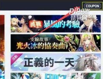 4、我们在右上方找到英文【COUPON】,并点击